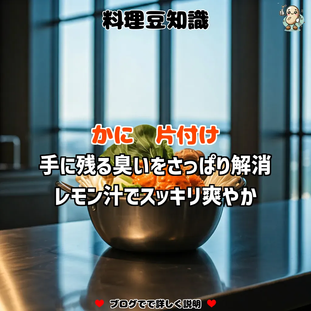 ポイントとしては、手にレモン汁を直接塗り、1分ほど置いてから水で流すことです。これにより、かに特有の臭いがしっかりと取れます。レモンがない場合は、お酢など他の酸性成分を代用しても一定の効果が得られます。食後の臭いが気になる方はぜひお試しください。