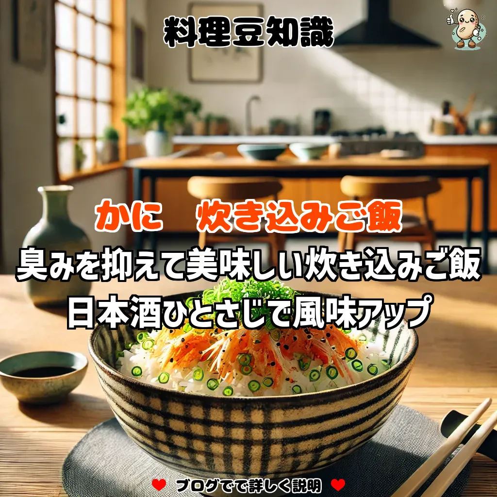 臭みを抑えたかに炊き込みご飯は、かにの風味が一層引き立ち、ふっくらとした炊き込みご飯が完成します。ぜひ試してみてください。