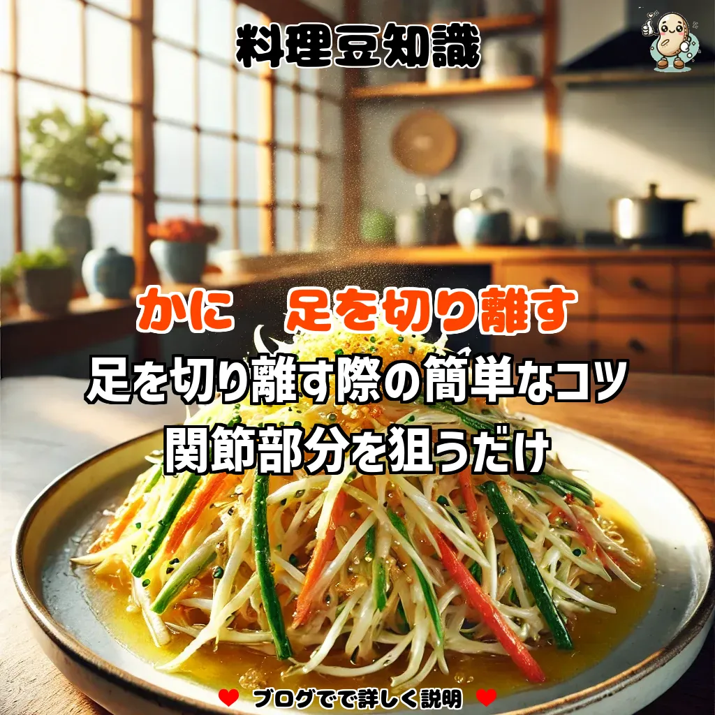 ポイントは、関節の位置を見極めて、そこに切れ込みを入れることです。関節を正確に見つけることで、包丁やハサミを使っても簡単に足が外れ、かにの肉を傷つけずに美しく切り離せます。小さなコツを知るだけで、料理がスムーズに進み、かに料理の下ごしらえが楽しくなるでしょう。