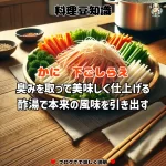 このように、少しの準備でかにを捌く際の力加減が大幅に楽になり、初心者でもスムーズに扱えるようになります。
