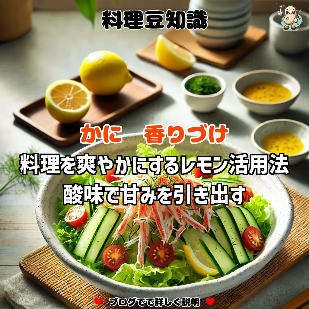 かにの甘みと香りをレモンで引き出す理由には、レモンの持つ酸味と香りが深く関係しています。まず、レモンの酸味がかにの甘みを強調します。かには脂がのっており、独特の旨味と甘みを持つ食材ですが、そこに酸味を加えることで、かにの甘みがよりはっきりと感じられるようになります。この組み合わせにより、かにの風味が際立ち、一層美味しく感じられます。