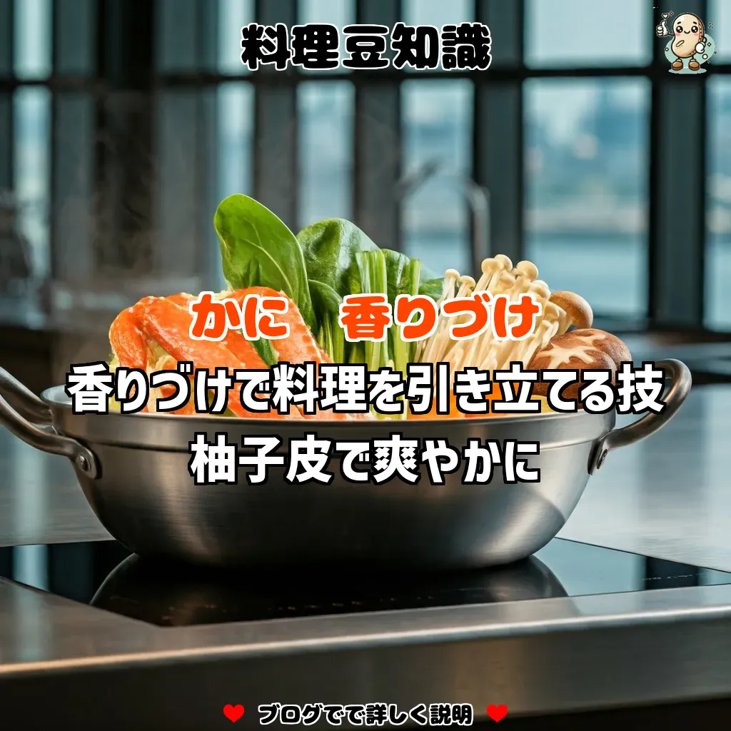 この方法は、シンプルながら非常に効果的で、誰でも簡単に試せるアレンジです。かにの香りを引き立てるために、ぜひお好みで柚子皮を加えてみてください。