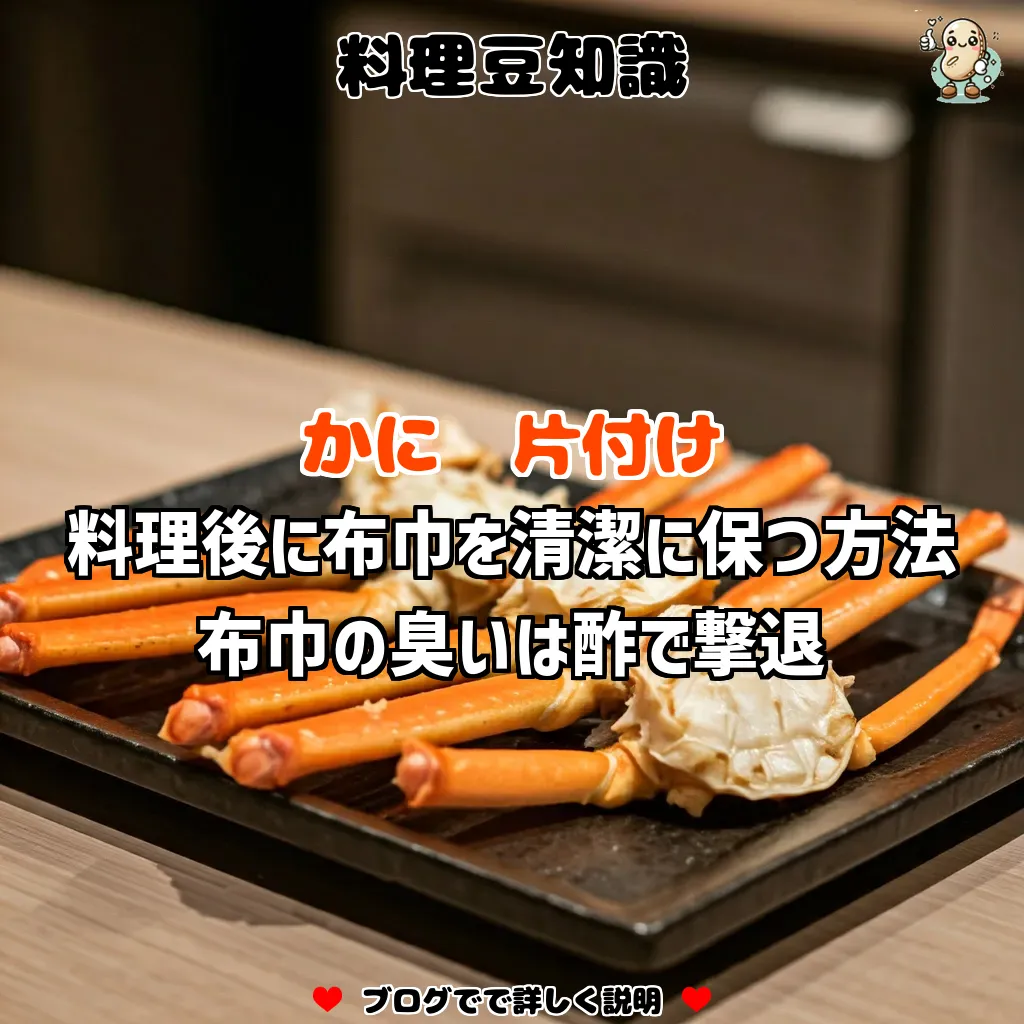 かに料理に使った後の布巾を清潔に保つために、お湯と酢を使った簡単な洗浄手順をご紹介します。この方法なら、手軽に臭いを消すことができ、衛生的にも安心です。