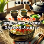 重曹を使うこの方法は安全性が高く、次回の調理も安心して楽しめます。かに料理の後片付けが楽になるこの方法で、清潔で快適なキッチン環境を保ちましょう。