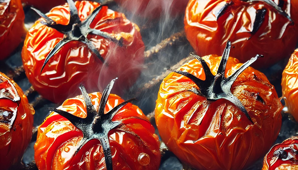 強火で焼くことで、トマトの皮がすぐに高温で加熱され、外側がカリッとした食感になります。この方法により、皮が固くなりすぎることなく、パリッとした食感を楽しむことができます。また、短時間で焼くため、トマト自体のジューシーさも保たれます。