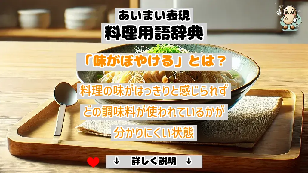 「味がぼやける」とは、料理の味がはっきりと感じられず、どの調味料が使われているかが分かりにくい状態を指します。たとえば、スープに適切な塩加減を加えないと、全体が薄味でぼんやりした仕上がりになります。煮物や炒め物でも同様のことが起こり得ます。