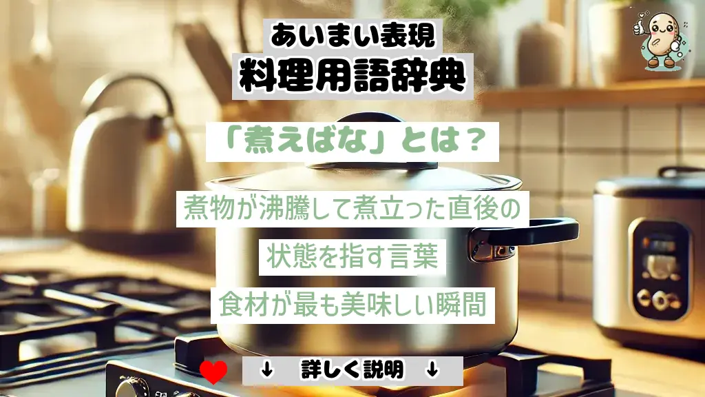「煮えばな」とは、煮物が煮えた直後の最も美味しい瞬間のことです。食材の色や風味を保ちながら仕上げるためのポイントです。正しいタイミングで火を止めることで、食材の味や歯ごたえを最大限に引き出せます。
