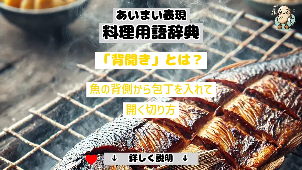 背開きは魚を背から開いて、調理しやすくする技法です。焼き物や煮物に適しており、調理時間を短縮し、骨も取りやすくなるため、見た目も美しく仕上がります。