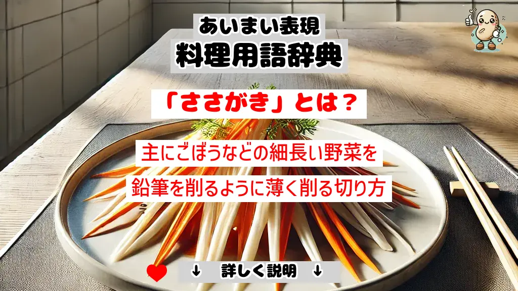 「ささがき」とは、食材を薄く削る切り方です。特にごぼうなどの根菜類に使われ、均一な厚さに削ることで、火の通りが良くなり、味がしっかり染み込みます。美味しく仕上げるポイントや注意点を学んで、料理に活かしましょう。
