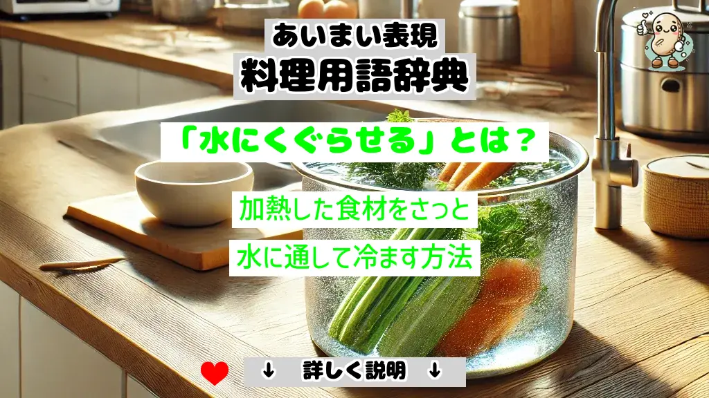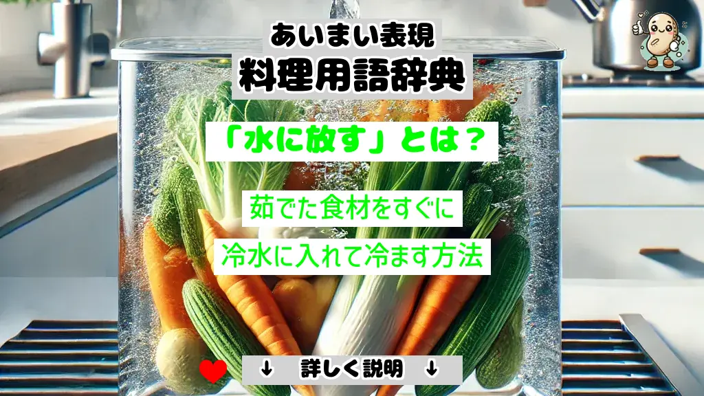 「水に放す」とは、茹でた食材を水に入れて冷ます方法です。短時間で冷やすことで、食材の色や食感を保つことができます。失敗しないポイントや応用テクニックを詳しく紹介します。