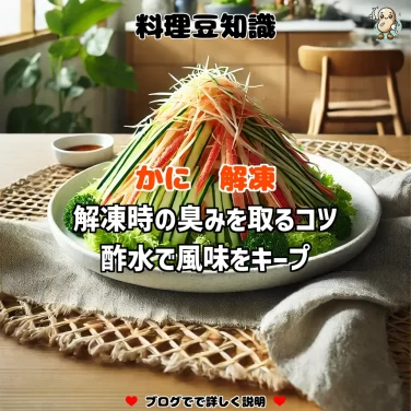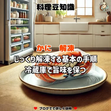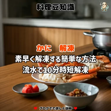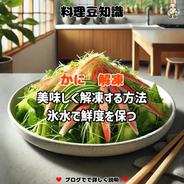 かにを鮮度よく急速解凍するためには、氷水を使った解凍方法が最適です。氷水で解凍することで、かにの風味と旨味がしっかり残ります。調理前に試してみてください。